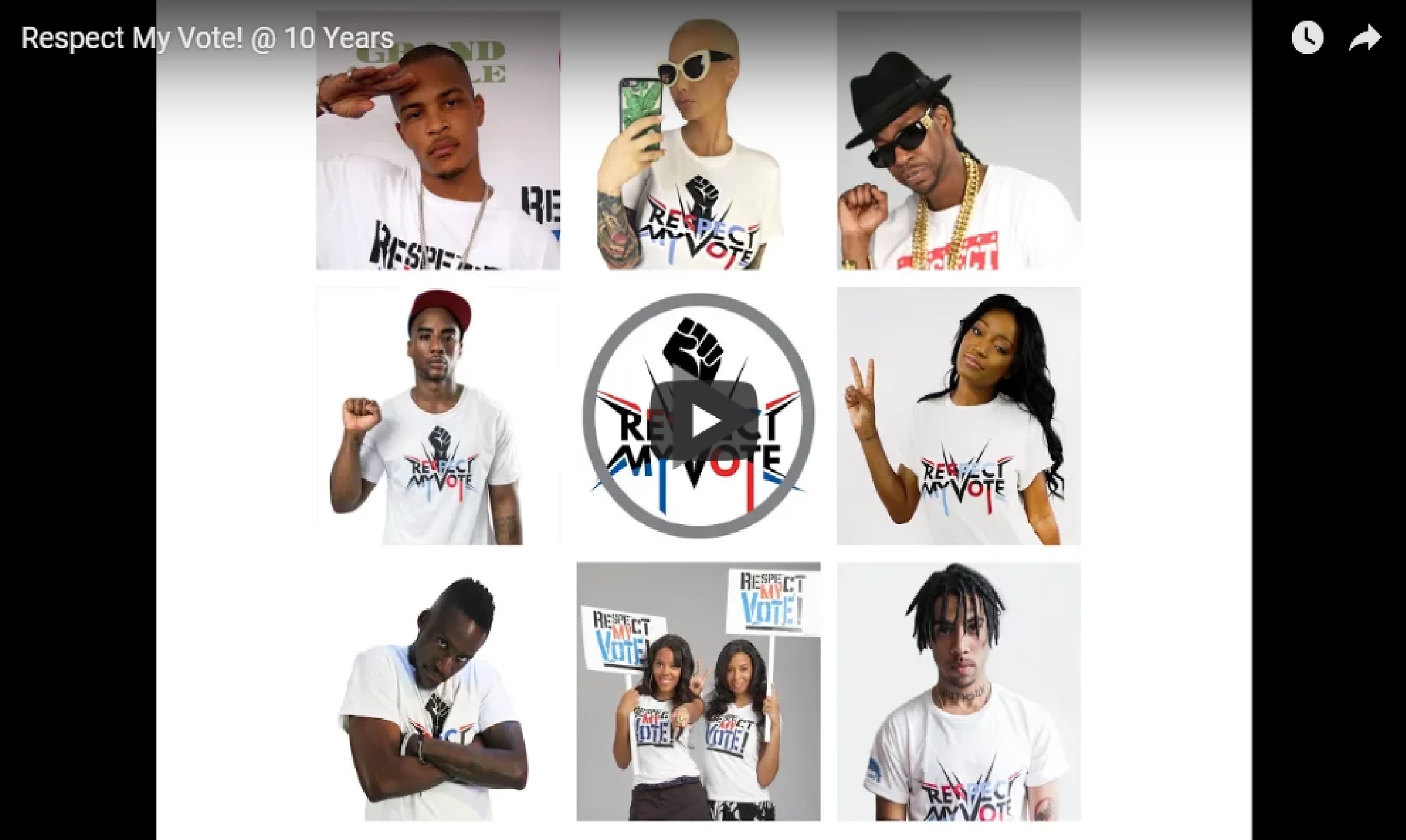 Share this video online using #RespectMyVote and tag us @HipHopCaucus so we can share your post. Here’s to another 10 years of Respect My Vote!