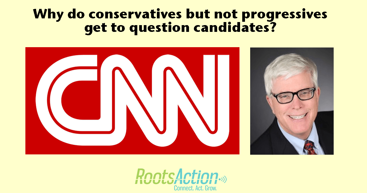 Prior to this debate, FAIR and RootsAction.org proposed that CNN add a progressive journalist as a questioner for the Democratic debates. For Republican debates, CNN includes rightwing questioners not normally on CNN. For Democratic debates it does not include leftist questioners traditionally banned from U.S. airwaves. Why? Is this approach dictated by the ineluctable forces of infotainment capitalism?