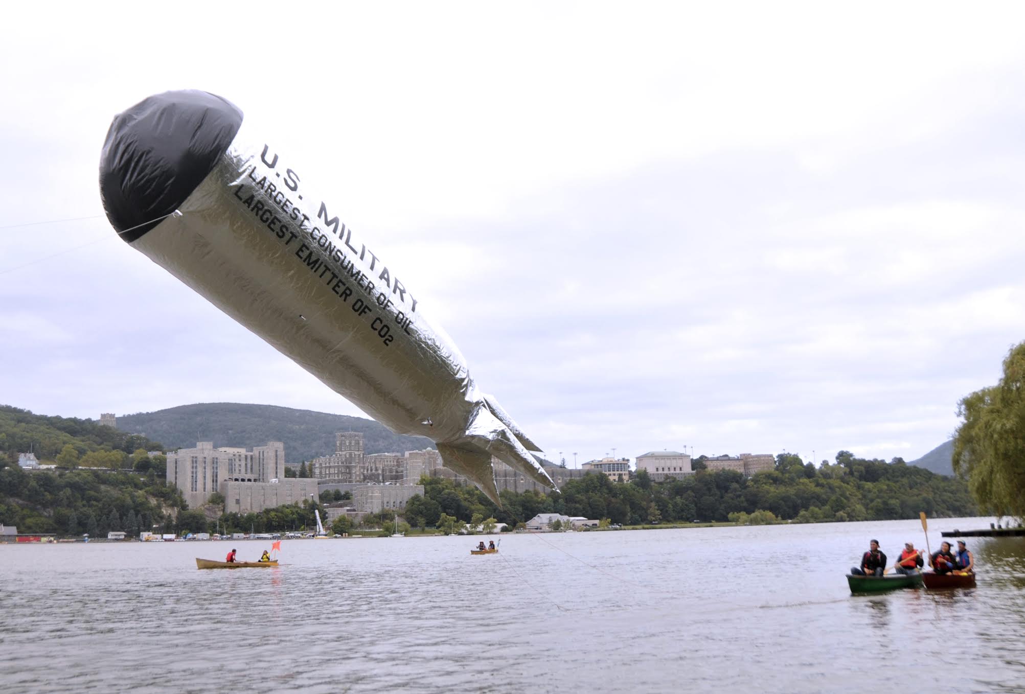This fun fact is followed by no remote hint at so much as “studying” the possibility of reduced militarism. In fact, it’s part of a section of the report called “Harness the Power of the Military for Net-Zero and Resilient Energy Installations.” The “power of the military,” as you read through it, appears to be the power to do incrementally less damage to the environment while steadily continuing to prepare for one of the most environmentally damaging activities ever devised: war. In fact, the crowning achievement of the “power of the military” turns out to be the ability to plan to attempt to achieve net-zero energy use on military bases in the year 2030. This will mean requiring military bases to include “renewable” energy production (including nuclear, biofuels, whatever). But a pass will be given to any bases anywhere on earth that are labeled “non-enduring,” by the Pentagon, including any of the non-enduring bases now littering the globe that are still non-enduring in 2030. There is no discussion of the fact that the military already gets 60% of federal discretionary spending, and that giving it even more in order to mitigate the damage it is doing runs contrary to the idea of creating a coherent efficient overall plan to reverse climate destruction.
