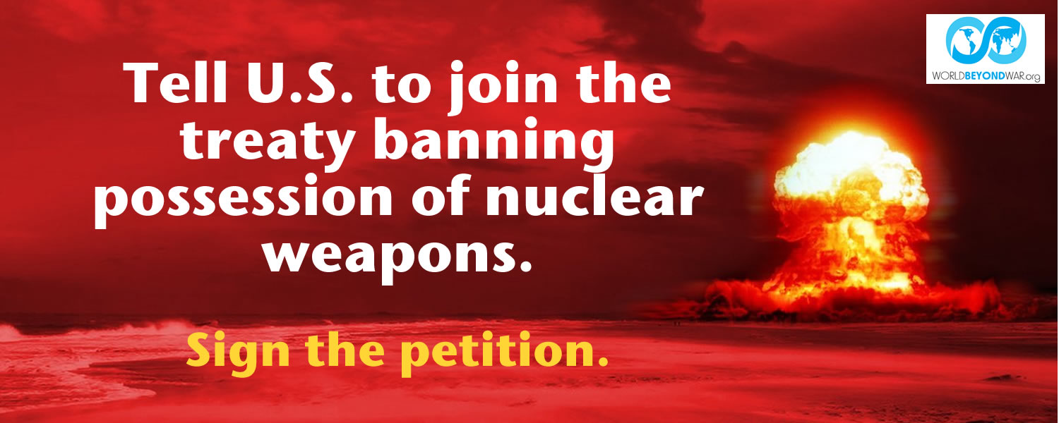 As long as the United States goes on engaging in horrific, one-sided, mass-slaughters of distant people about whom the U.S. public is told little, targeted nations like North Korea and China will not give up nuclear weapons. And as long as they do not — barring a transformational enlightenment within or vastly enlarged courageous opposition without — the United States will not either. Ridding humanity of nuclear weapons is the obvious, most-important, end in itself and first step toward ridding ourselves of war, but it’s unlikely to happen unless we move forward on ridding ourselves of the whole institution of war at the same time.