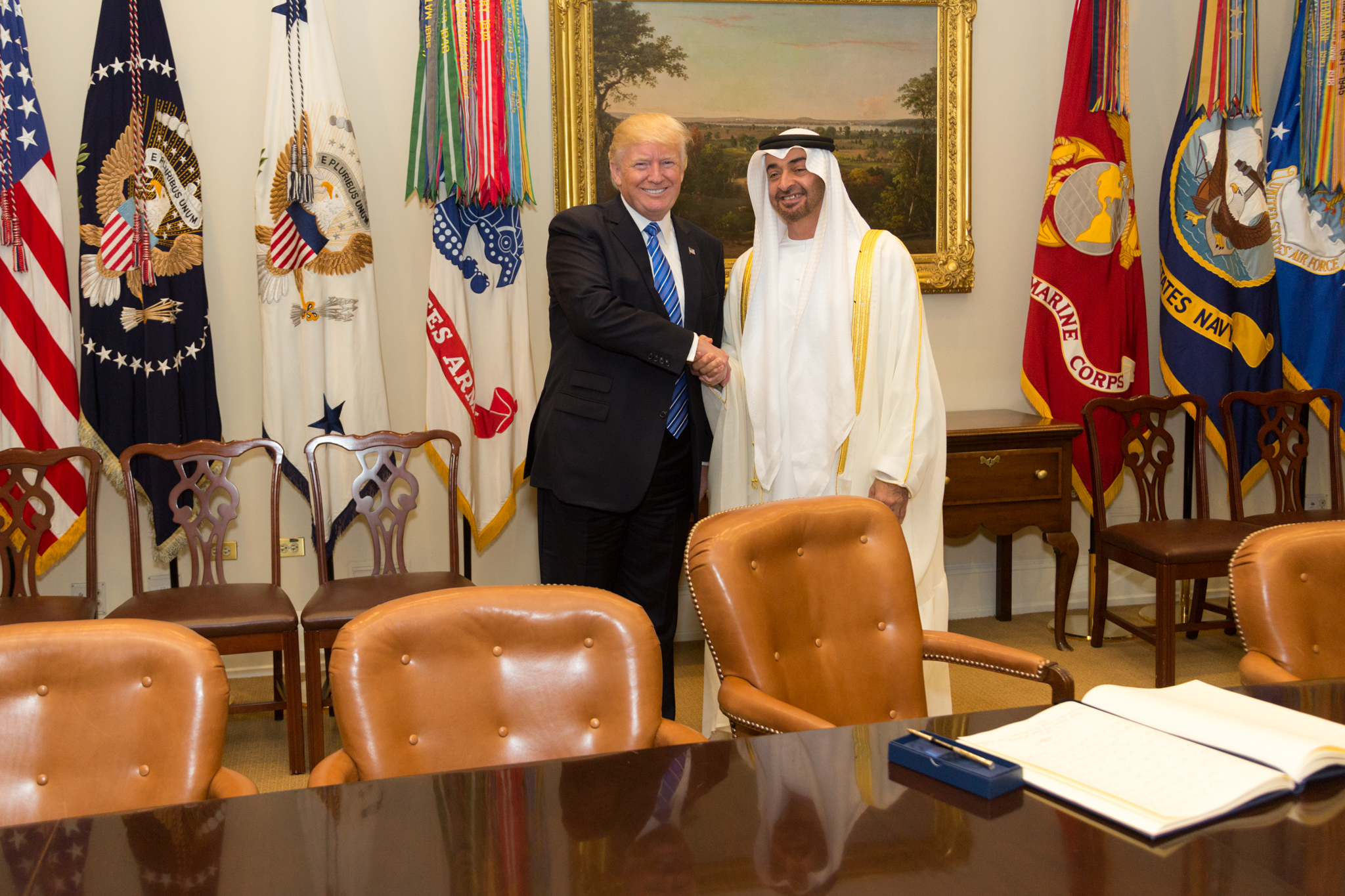 Pictured: Sheikh Mohammed bin Zayed Al Nahyan, Crown Prince of the Emirate of Abu Dhabi and Deputy Supreme Commander of the United Arab Emirates Armed Forces (MbZ) and some guy.