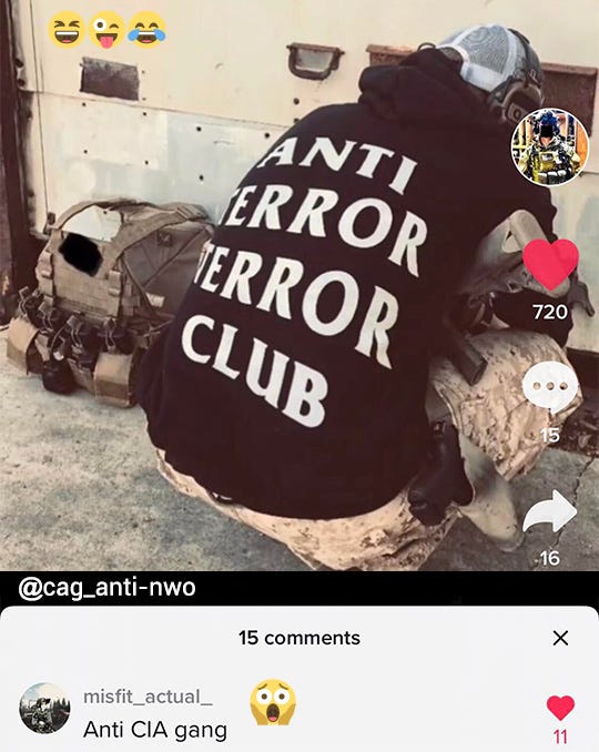We are a COUNTER-terrorism operation. The only people we “terrorize” are proven terrorists who do harm to innocent civilians.