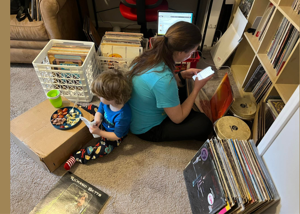As we head into 2022, we can't help but think that the future of record stores is pretty bright, with the next generation settling right in, both behind the counter (taking a lunch break while helping Mom pack up orders at The Pour House Music Hall and Record Shop, above) and in front of it (taking home a little something for the collection from Graywhale, below).