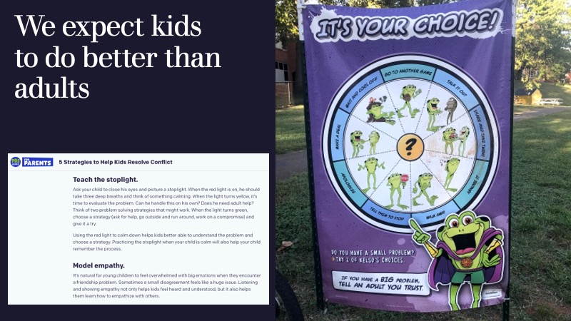 We are so aware of what’s needed that we all routinely tell our kids to be radical peacemakers, to deescalate, to back away, to apologize, to compromise.