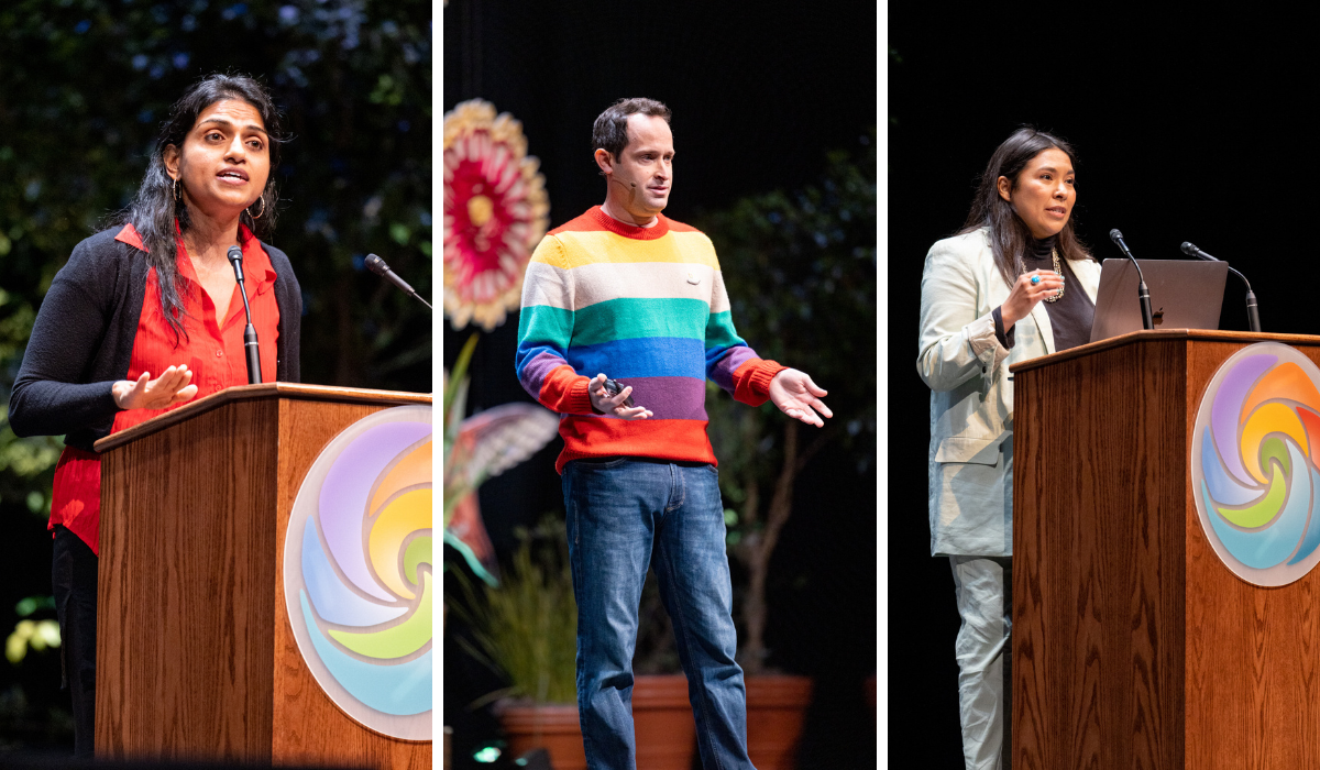 Today, we have the opportunity to present an early release of three audience-favorite keynote presentations. These talks electrified the Bioneers 2023 community, proving that incredible leadership exists today across sectors and missions. Scroll through to watch presentations from labor activist Saru Jayaraman, whale biologist Shane Gero, and Indigenous rights activist Jade Begay.