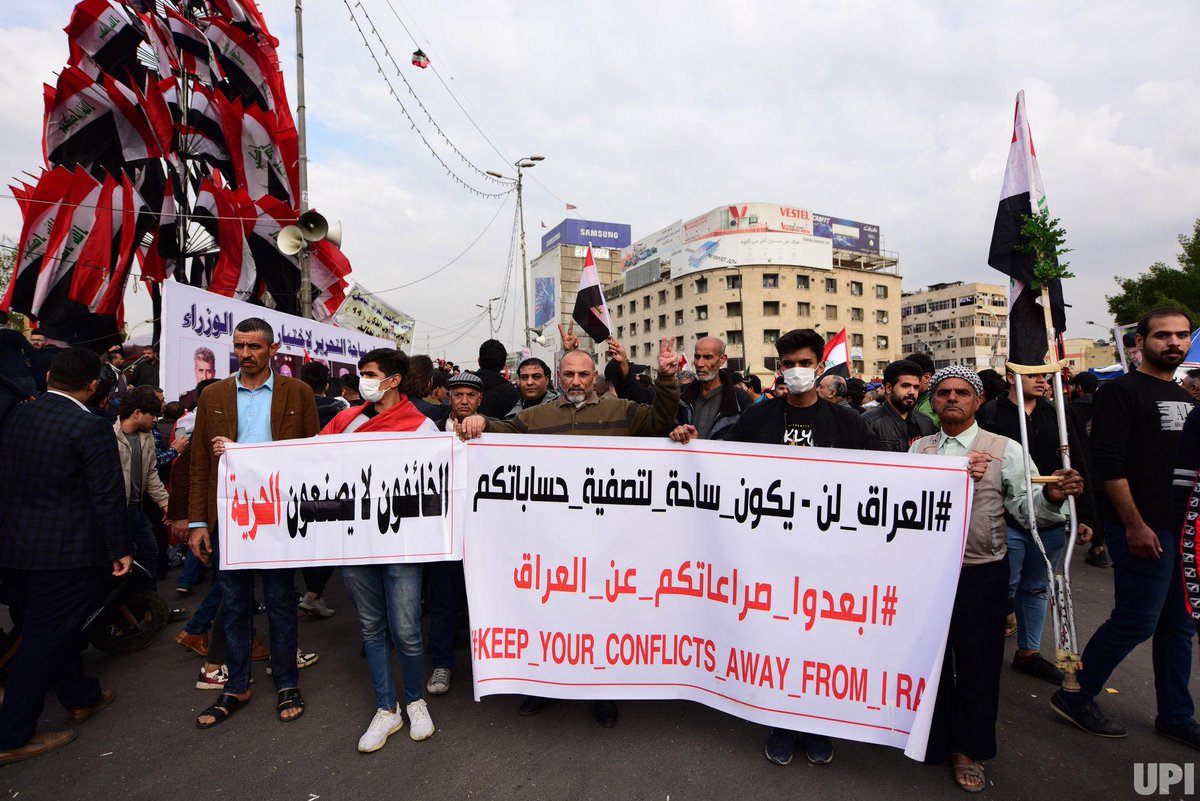 - Iraqi anti-government demonstrators protest in Baghdad's Tahrir Square on Jan. 10, 2020. Thousands of Iraqis rallied across the country today, reviving a months-long protest movement vs the gov & adding criticisms of both the US/Iran to their chants. Photo by Humam Mohamed @UPI.