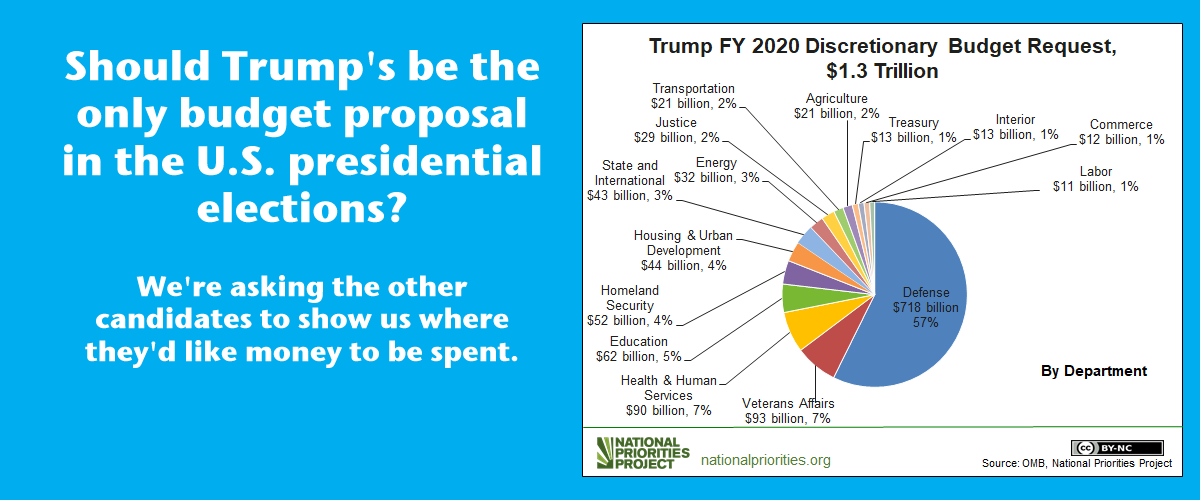 A petition supported by World BEYOND War, RootsAction.org, and Daily Kos, has thus far gathered over 12,000 signatures from people asking presidential candidates to propose federal budgets.