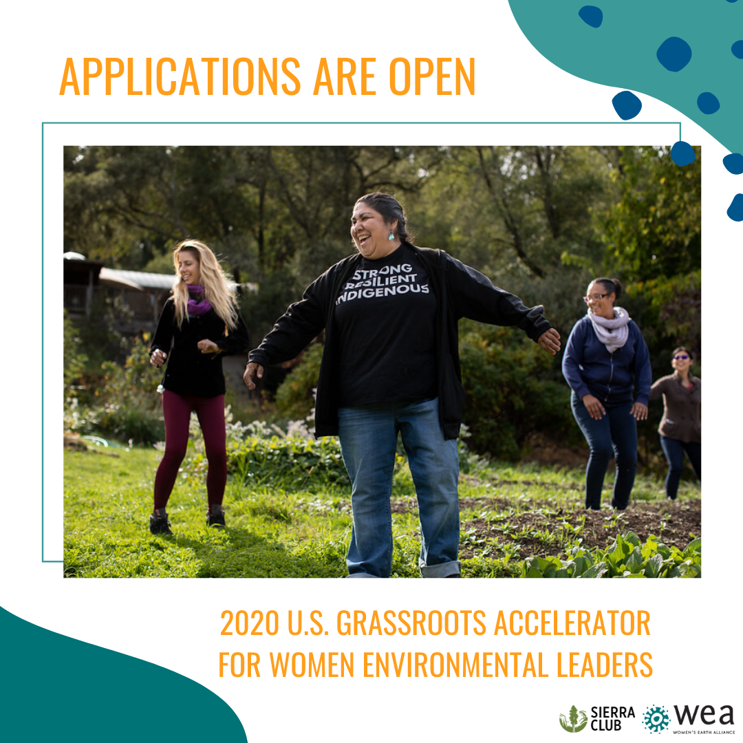 Women’s Earth Alliance and the Sierra Club are partnering to support women leaders by helping them grow or scale their grassroots environmental and climate initiatives. This project, called the 2020 Women’s Earth Alliance Grassroots Accelerator, is accepting applications until June 8th. Encourage women in your network to apply now!