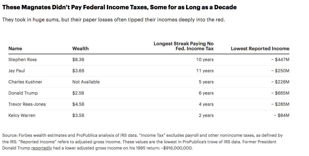 ProPublica, a national treasure where real journalists ply their trade (“Real” meaning people who actually read, don’t traffic in gossip and are not simply mouthpieces for elites), has a really terrific new study looking at yet another tax scam that allows real estate and oil tycoons to dodge paying taxes.