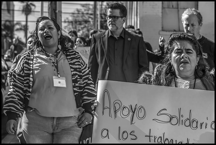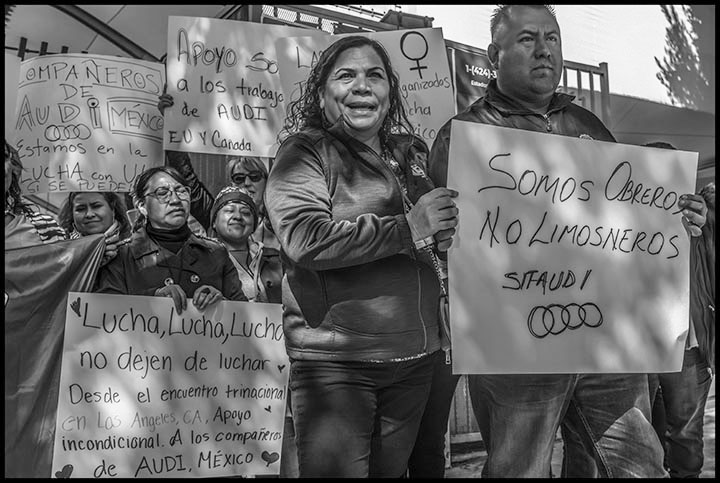 ![]() Members of the original independent union committee at the Mex Mode maquiladora. Interviews with organizers Julia Quiñones and Julieta Morales offer their vision for a new era of labor solidarity. These interviews forms part of a series of interviews with prominent Mexican labor leaders conducted by photojournalist, author, political activist and union organizer David Bacon. These interviews are a collaboration between IRLE, the Labor Center and the Center for Mexican Studies at UCLA. Organizing among maquiladora workers, especially in the factories on the border, has gone in waves over the past four decades. In many cases, those efforts have led to the creation of cross-border relationships between unions and activists on both sides of the Mexico/U.S. border, and even to organizational structures that produced programs and actions beyond supporting individual campaigns. Because of the demographics of the maquiladora workforce, some of the most important organizers have been women. Today another wave of organizing activity is growing, and with it debates about how new independent unions should be organized, and the relationship they should have to established unions in both countries. Julia Quiñones and Julieta Morales are veterans of these efforts, and in these interviews offer their visions for a new era of labor activity and solidarity. Julia Quiñones is the director of the Comite Fronteriza de Obreras (the Border Committee of Workers), one of the most important organizations in the long history of the efforts to organize workers in the maquiladoras on the Mexico/U.S. border. CFO began officially in '98, but Quiñones was doing basic work long before. She offers the perspective of a veteran of the border labor wars. When I interviewed her at a conference organized by the Solidarity Center and the UCLA Labor Center, she began by saying that this cross-border effort was happening "in a new era." ![]() Julia Quiñones with a strike leader from the Audi assembly plant. JULIA QUINONES We need more than yesterday's ideas. A lot of things have changed in Mexico. There is a lot of movement now at the national level and changes are taking place. In Mexico we had the 2019 labor reform, and in the United States recently there was the big autoworkers strike. We've learned a great deal from both. Now many unions and organizations in Mexico are looking for ways we can influence this movement more effectively. This is also a cultural moment, where workers have to learn to work together because they work for the same companies. In the past the possibility of having independent unions on the border, in the maquilas, practically didn't exist. That was the situation for decades. Now I think that we are seeing the possibility of seeing real unions, if the charros don't take it away from us. I would like to be optimistic and say we still have the initiative, because the conditions are still there. But we have to deal with the history of so many years of oppression by corporate unions. The change is not going to be easy, and the charros are defending themselves. On the other hand, we have the initiatives of many independent workers who are seeking to build new organizations, but they often lack a lot of confidence. Until recently there was a lot of apathy, and workers would say, no se puede, that things could not be changed. We have to develop new strategies and I believe that it can be done. This is what we have been working on for 4 years. In 2019 CFO began a project to make workers aware of the labor reform. This is something that the Ministry of Labor was also doing, but at the CFO we believe that it is important to bring this information from person to person, through small group meetings, so that workers truly understand the opportunities they have now. The more they know, the more they spread the information through their social connections with co-workers. In the last three years we have supported four organizing campaigns. In one they were able to create an independent union, and in another it barely exists yet. Workers were able to create an independent union (using the sponsorship of the Liga Sindical Obrera Mexicana) in a company called Delta Staff. This is a garment company that produces for brands like The Gap and Levi's. They make pants, belts and uniforms. Eighty-seven percent of the workers voted for an independent union against the CTM. Things happen by systematically accompanying the workers, by training leaders, and by promoting gender empowerment. But nothing is going to happen just because the opportunity exists. You have to do a lot of organizational work. There has been a lot of talk about the TMEC and the labor reform, but they only create opportunity. You need to organize people. But the workers have to make the decisions, even if there is a lot of money and many organizers. We need to help workers make a comprehensive plan, that is, by giving them training in creating a strategy, and by looking for leaders. These are steps that have to be followed before we can make changes. Union support for campaigns is also important, especially by unions on the other side of the border, like the UAW. In the past it was much easier to organize if we could use an existing registry of another union. CFO had a relationship with the miners and they had a relationship with the United Steel Workers (USW). In the Delta Staff campaign, CFO had the support of Workers United, which represents Levi's workers in the U.S. ![]() Francisco Ortiz worked at Ken-Mex, a medical products plant built in Tijuana in the 1980s by Kendall International. He shared a small house, in a neighborhood below Otay Mesa, with three sons, who lived with him in the front room, with his uncle, his wife and children, and with his mother and grandmother. Today workers have more options. Now there are ways workers can create their own independent union. This is something that will have to be explored. Solidarity and the wor